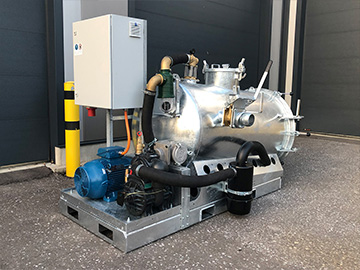 Driven by an E-motor, which is controlled via a frequency converter, it powers a vacuum compressor with a suction capacity of 9,500 l/min.