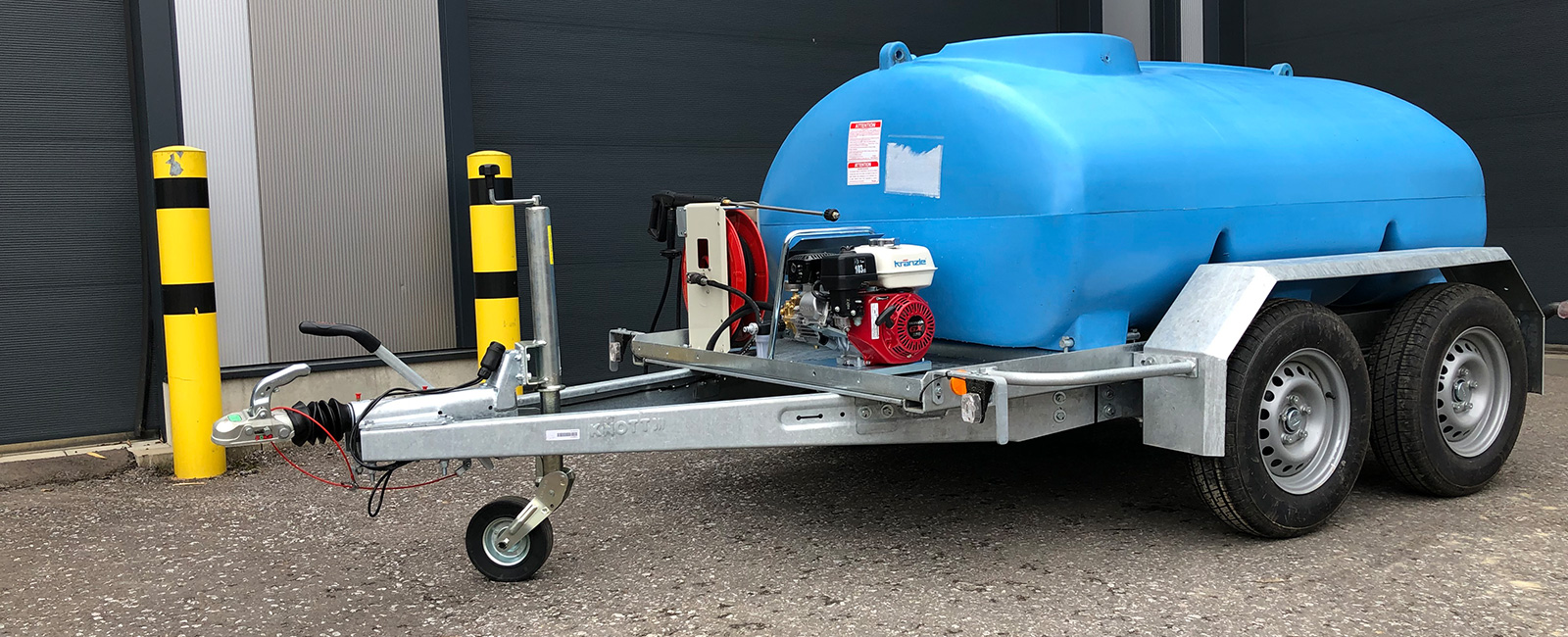 Der mobile Wassertransporter M-WTP 2000 hat ein Fassungsvermögen von 2000 Liter und bringt Frischwasser dorthin, wo es benötigt wird.