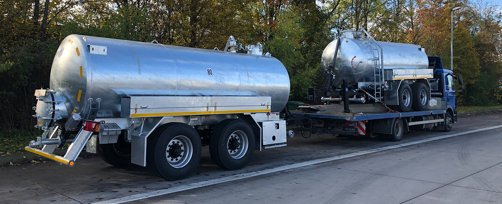 Der M-WT 12000 ist mit einem Fassungsvermögen von 12 m³ für den Transport großer Wassermengen zur oder von der Baustelle konzipiert. Behälter und Fahrgestell sind feuerverzinkt und verfügen über einen optimalen Schwerpunkt.