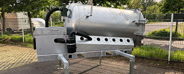 Das S-VAC 1.5m³ wurde gebaut, um in einer Müllverbrennungsanlage Klärschlamm mit einem Höhenunterschied von bis zu 7 Meter Tiefe und 20 Meter Entfernung aufzusaugen.