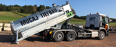 Abrollkipper mit VakuumSaugSystem als Aufbau gefertigt nach DIN 30722.