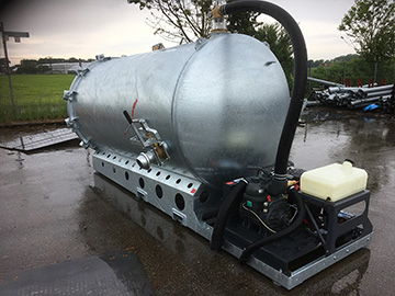 Das S-VAC mit 2000 Liter Fassungsvermögen - mit einem Leergewicht von ca. 900 kg kann es auf nahezu alle Plattformen montiert oder verzurrt werden. Anpassbar mit allen Sonderausstattungen wie einer Schlauchhaspel oder Hochdruckreiniger und angebauten Wassertanks.