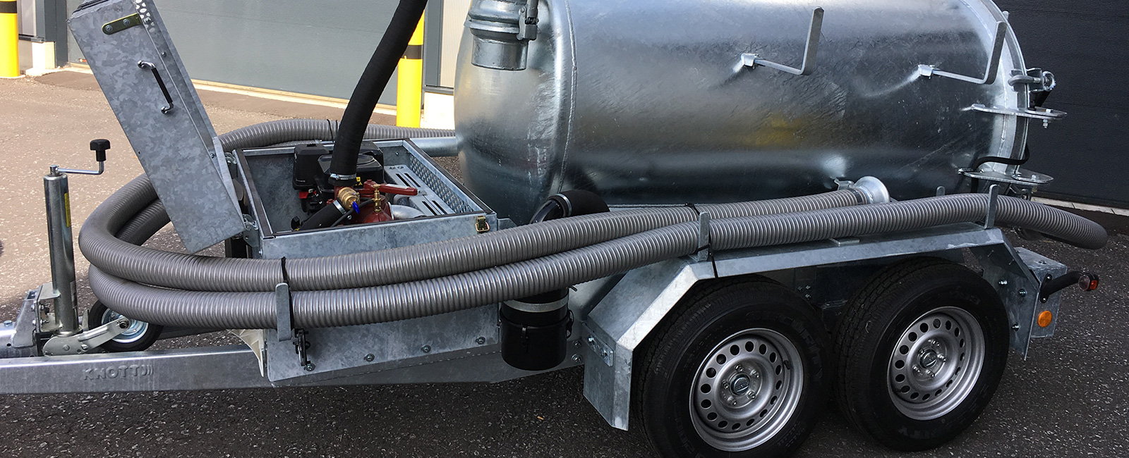 Knebelverschlüsse und Schlauchhaspel mit 25m-Saugschlauch